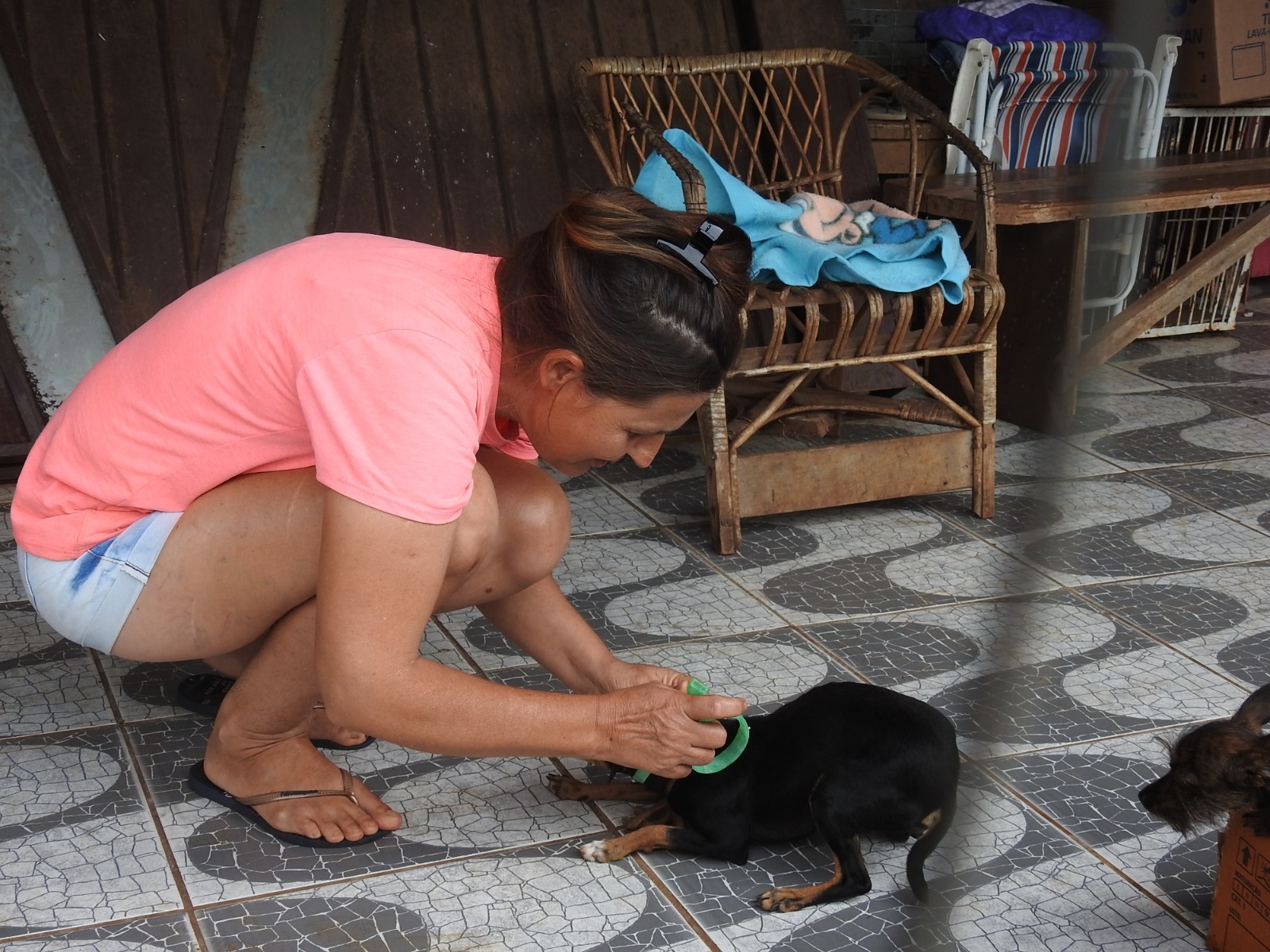 A médica veterinária do Município, Tatiane Brancalione, informou que foram colocadas cerca de 1.000 coleiras antiparasitárias em cães das residências que foram visitadas. As coleiras agem por um período de cinco meses.