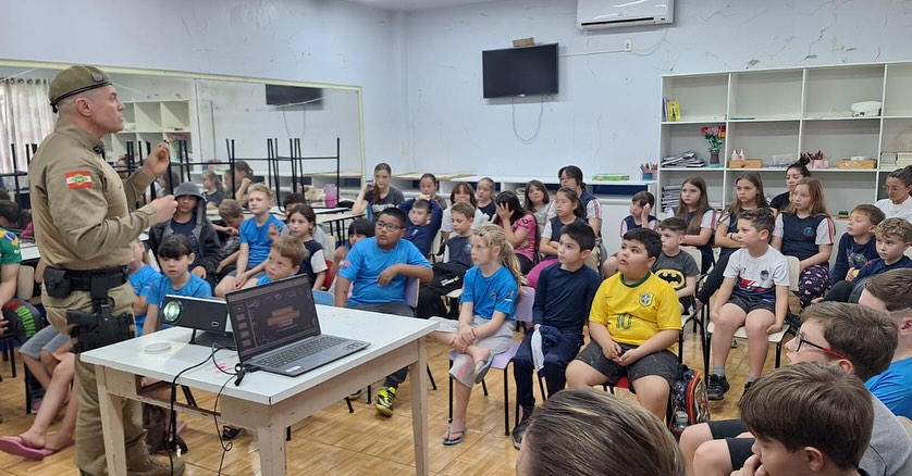 Última atualização: 2025/09/12 9:18:56O Serviço de Convivência e Fortalecimento de Vínculos (SCFV) de Guaraciaba recebeu, nesta semana, a importante parceria da Polícia Militar, representada pelo Sargento Rodrigo Mezadri, para a realização de uma atividade educativa com crianças e adolescentes atendidos pelo serviço.