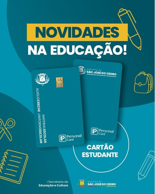 Última atualização: 2026/01/22 5:50:38A Secretaria de Educação de São José do Cedro realiza nesta quinta-feira, 22, o lançamento oficial do Cartão Escolar, iniciativa que inaugura um novo modelo de aplicação dos recursos públicos destinados à aquisição de materiais e uniformes escolares na rede municipal de ensino. O ato está marcado para as 19h, no Clube Cedrense, com a presença de pais e responsáveis pelos estudantes.