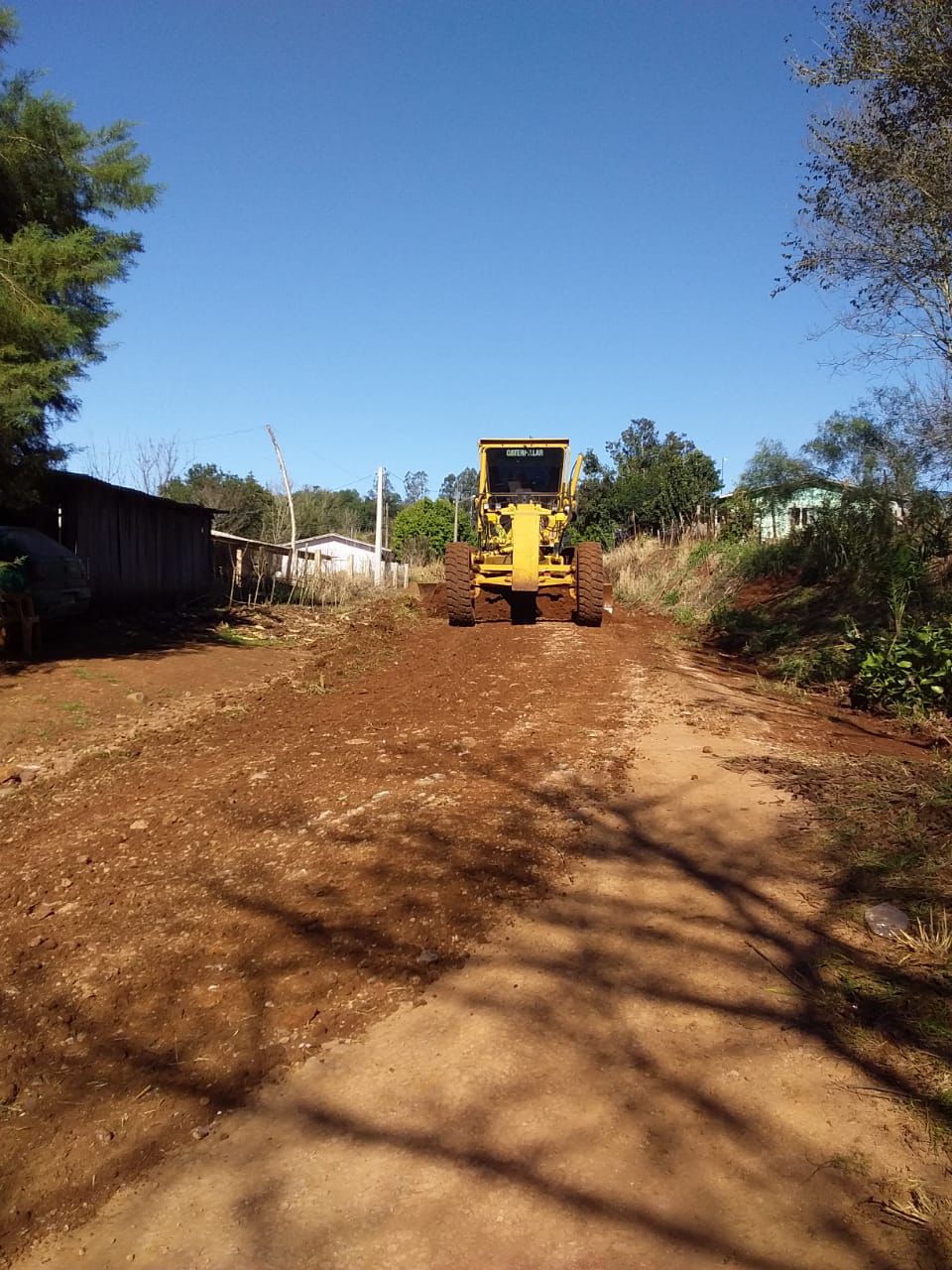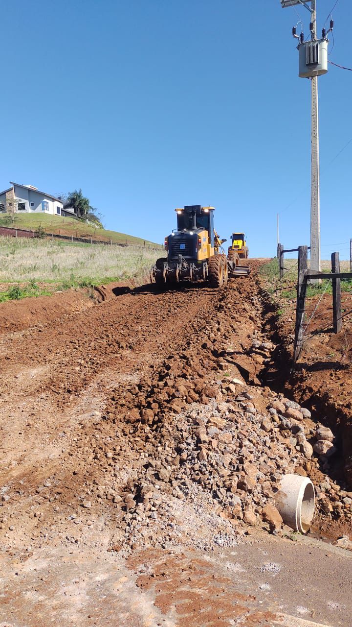 Em Linha Tigre e Linha Encantado as equipes realizam melhorias de infraestrutura, principalmente no acesso às propriedades. Já em Linha Liso, Rafael destaca que uma equipe trabalha nas melhorias com a colocação de tubulação na estrada geral.