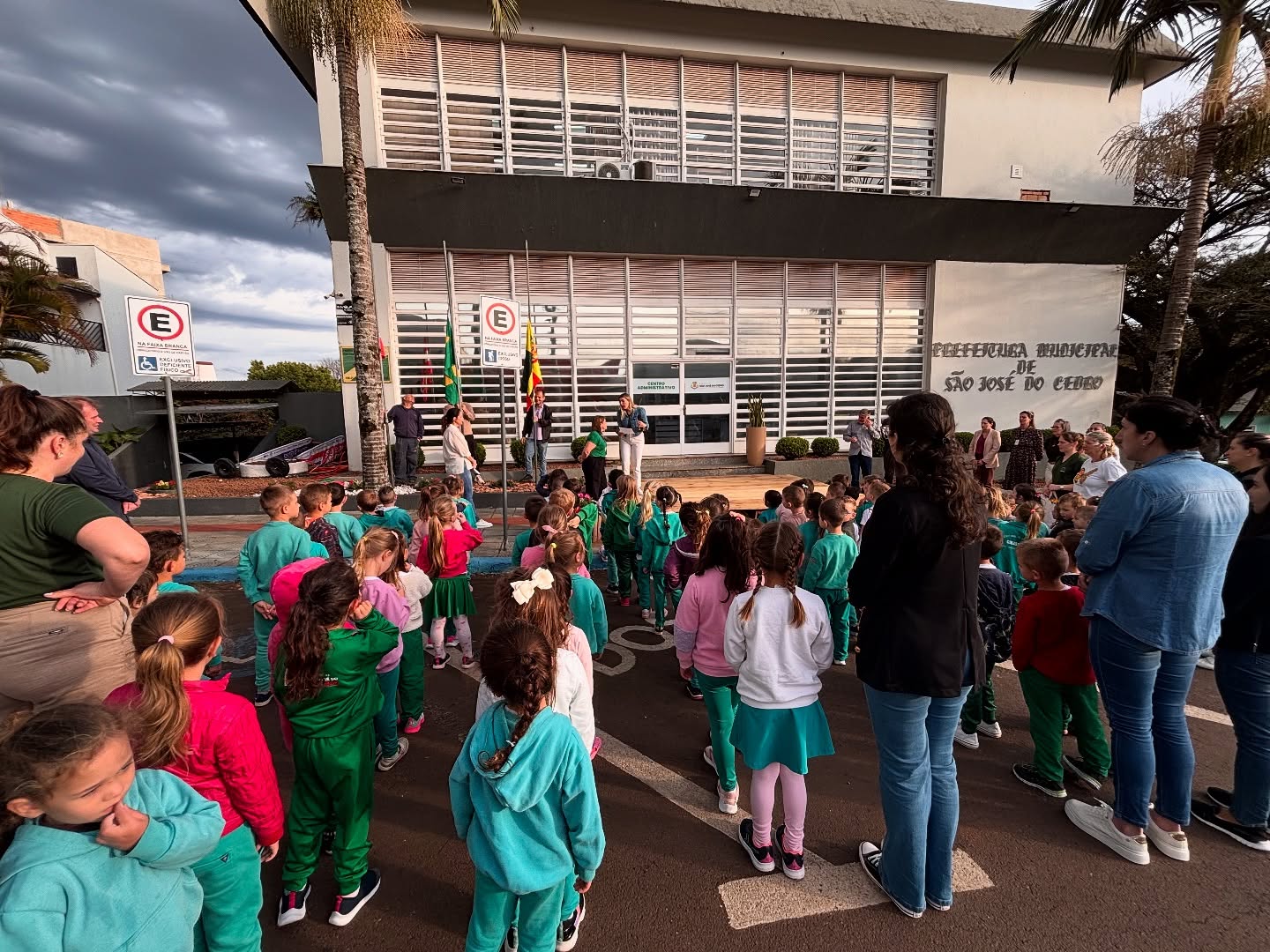 Na ocasião, também foi entoado o Hino Nacional Brasileiro e realizado o hasteamento das bandeiras do Brasil, de Santa Catarina e do município de São José do Cedro.