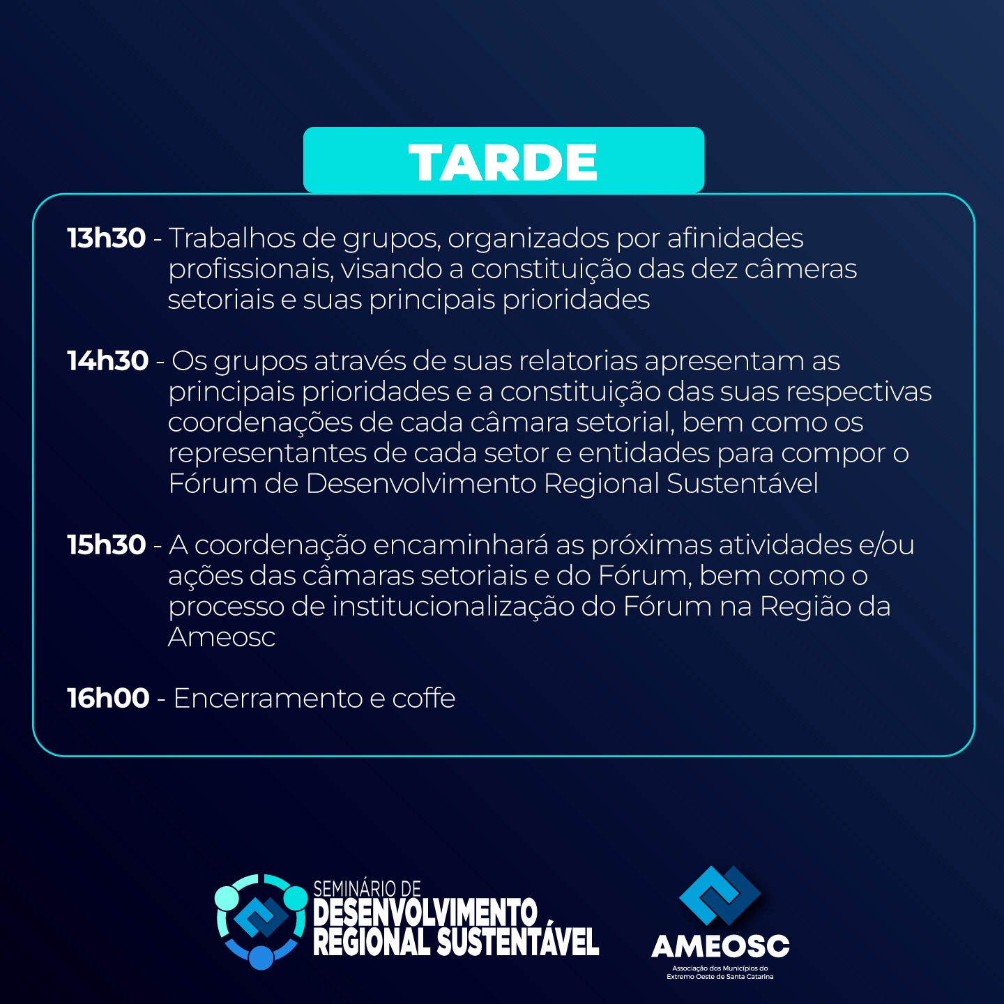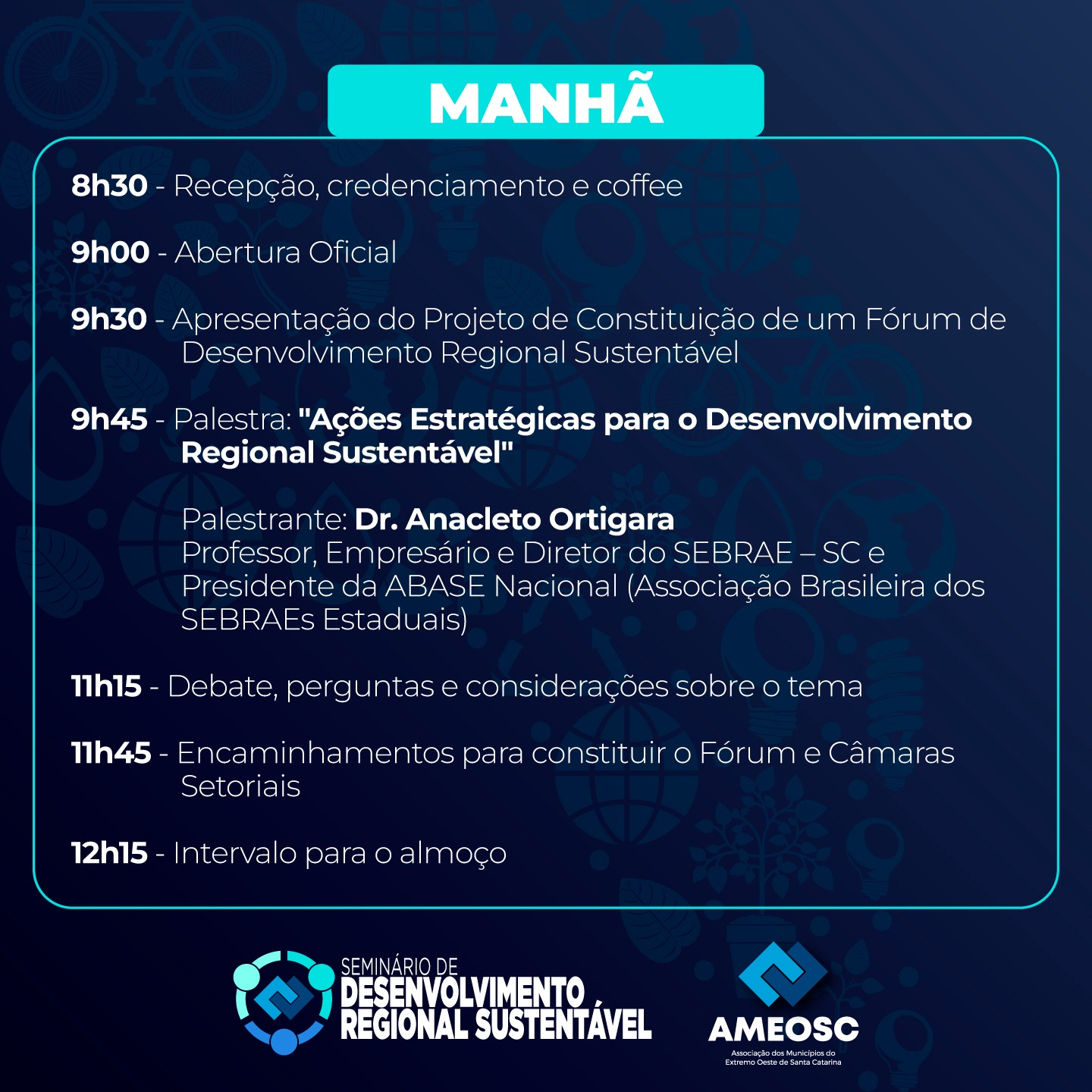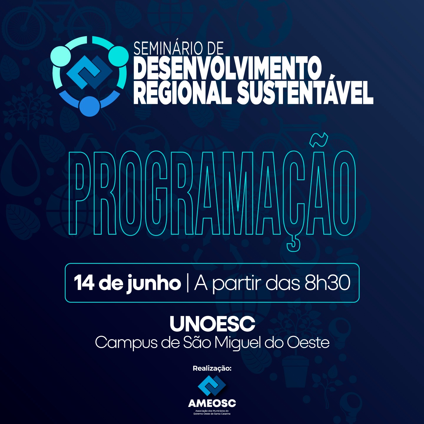 Última atualização: 2024/06/12 4:08:05A Associação dos Municípios do Extremo Oeste de Santa Catarina, reforça o convite a imprensa para o Seminário de Desenvolvimento Regional, que acontecerá no dia 14 de junho, na Unoesc. O evento reunirá lideranças das diversas entidades da região da Ameosc, além de especialistas e profissionais de diversas áreas para discutir estratégias e soluções inovadoras para o desenvolvimento sustentável e inclusivo da região.