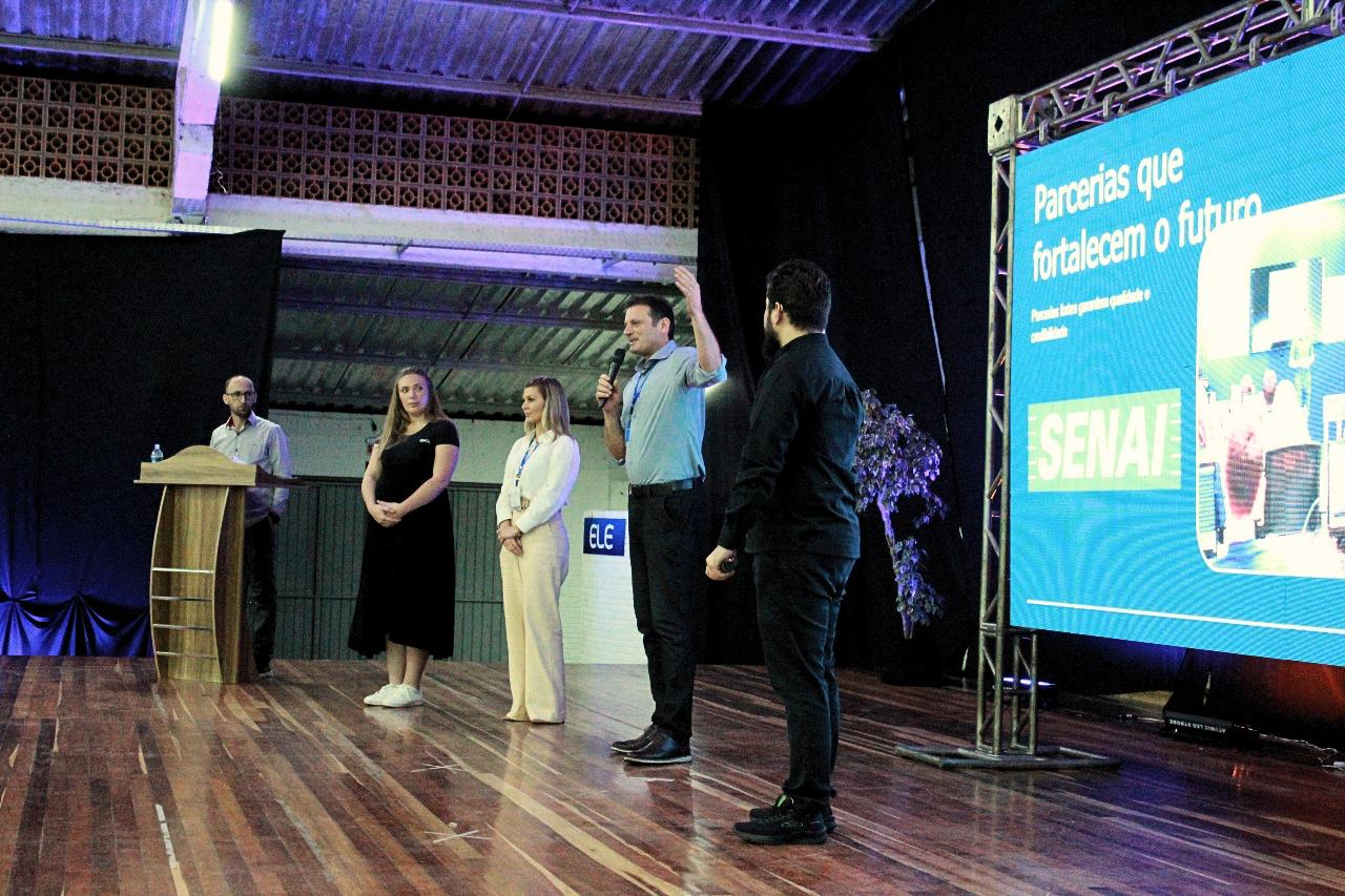 A cerimônia reuniu representantes do setor público, privado e da área educacional, evidenciando a importância das alianças estratégicas para fortalecer a formação profissional no Oeste catarinense. Entre os presentes, esteve Jardel Carminatti, gerente executivo do SENAI de São Miguel do Oeste, que destacou a relevância da atuação conjunta com a SKA Tech Hub para ampliar o acesso à tecnologia, inovação e oportunidades para jovens e profissionais da região.