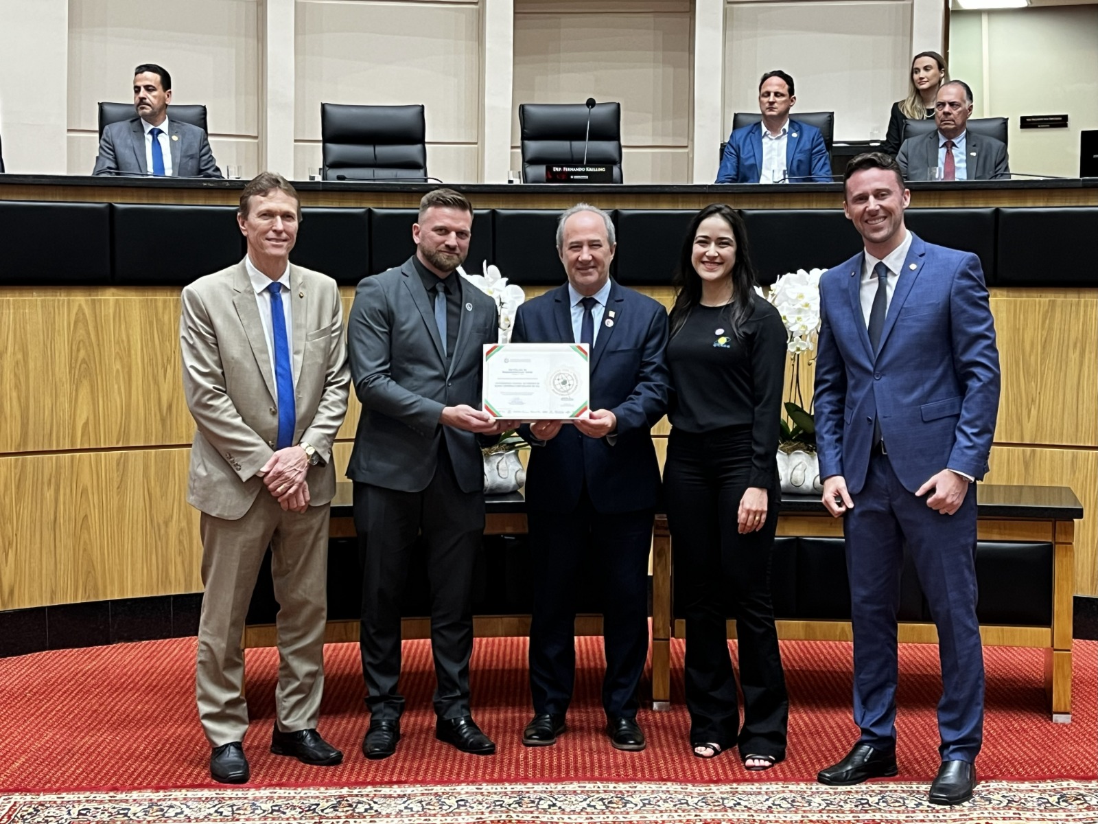 Última atualização: 2025/12/11 11:06:53O Sicoob São Miguel recebeu, na noite de ontem (10/12), o Certificado de Responsabilidade Social concedido pela Assembleia Legislativa de Santa Catarina (ALESC), durante a sessão especial, realizada no Plenário Deputado Osni Régis, na sede da ALESC em Florianópolis/SC. O reconhecimento é uma das principais iniciativas do Parlamento para valorizar instituições que promovem ações sociais, ambientais e de governança no estado.
