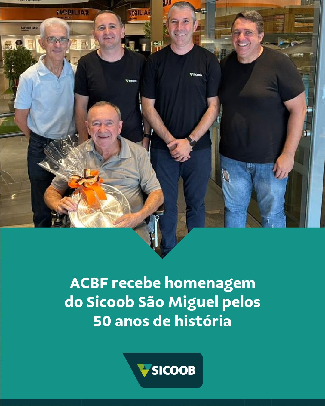 A homenagem foi marcada pela entrega de uma placa comemorativa ao presidente Clovis Tramontina, simbolizando cinco décadas de dedicação ao esporte e à formação de atletas. Estiveram presentes membros da diretoria da ACBF, como Lourival Dalmás e Leandro Benini, além de representantes do Sicoob: Jacson Bosio, gerente regional do Rio Grande do Sul, e Thiago Welchen, gerente da agência Sicoob de Carlos Barbosa/RS.