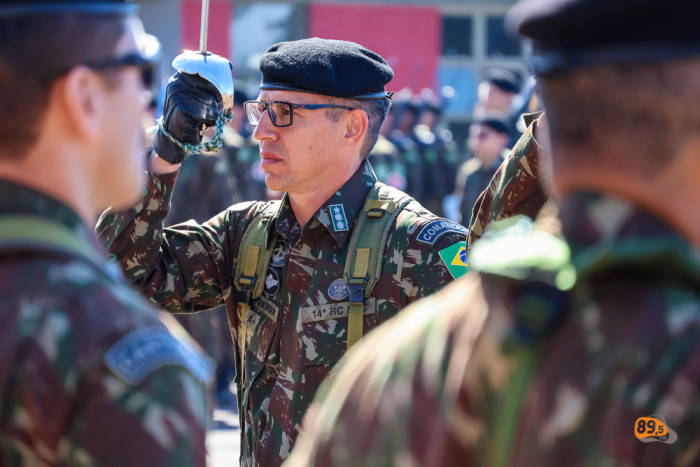 A solenidade foi presidida pelo comandante do 14º RCMec, Tenente Coronel, André Gustavo Albuquerque da Cunha, e contou com a participação de autoridades civis e militares, ex-integrantes do regimento “Lanceiros do Ponche Verde” Pelotão Mirim e familiares.