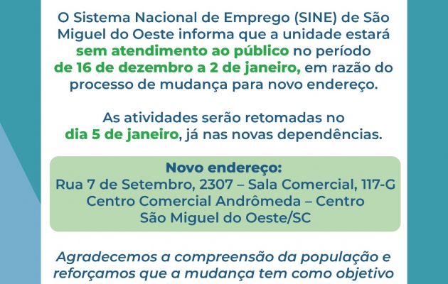 Unidade ficará fechada até 2 de janeiro e retomará as atividades no novo local em 5 de janeiro