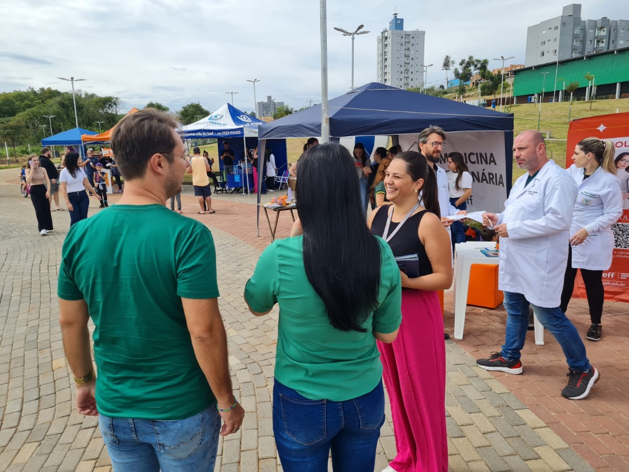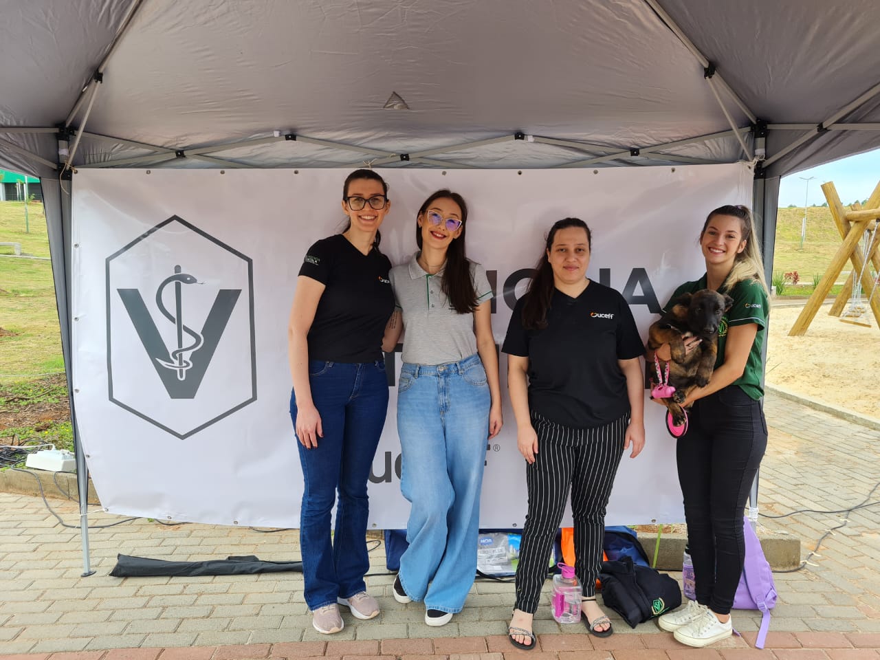 No último sábado (15), alunos dos cursos de Medicina Veterinária e Psicologia da UCEFF Chapecó estiveram presentes na inauguração do Parque Colina Verde, no bairro Belvedere, em Chapecó, prestando serviços à comunidade.