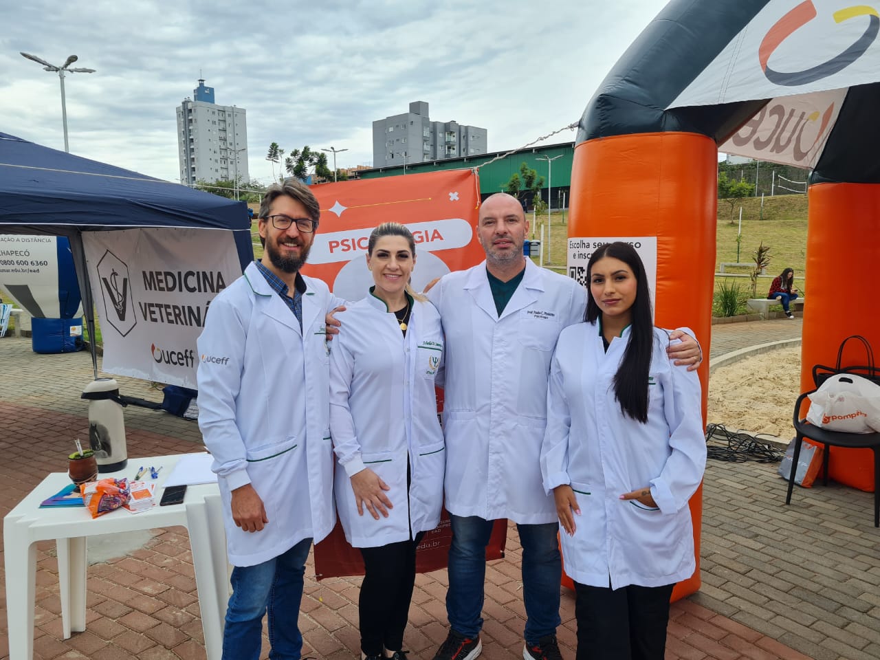 Durante o evento, que foi uma ótima oportunidade para contribuir com o processo de aprendizado e especialização, os acadêmicos de Medicina Veterinária atuaram na conscientização sobre a importância da castração e cuidados básicos com os animais, como vacinação e desvermifugação. Já os alunos de Psicologia estavam realizando o teste DASS-21, utilizado para medir diferentes níveis de depressão, ansiedade e estresse, e encaminhando as pessoas para a Clínica Psicológica da UCEFF.