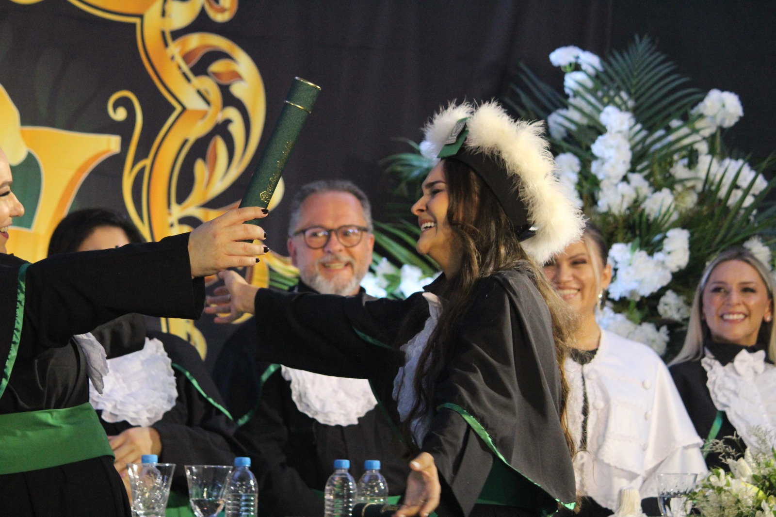 Hoje celebramos um curso que é motivo de profundo orgulho institucional. Um curso com nota máxima, consolidado pela excelência acadêmica e por uma identidade fortíssima em sua essência. E essa é uma conquista que dedico a vocês, formandos de 2026, que hoje são entregues à sociedade como médicos veterinários formados em um curso de excelência. A partir de agora, vocês serão nossos maiores exemplos, e referência para aqueles que começam a trilhar o mesmo caminho. Honrem essa trajetória e o nome da instituição que os formou. Sigam firmes, éticos e comprometidos com a vida em todas as suas formas. A UCEFF sempre será a casa de vocês. Parabéns por essa conquista!”, disse a Pró-Reitora da UCEFF em seu discurso de encerramento.