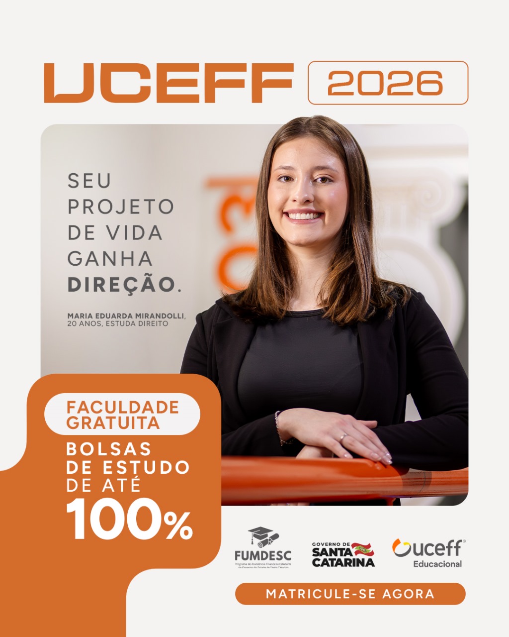 Última atualização: 2025/09/18 8:59:00Na última semana, a UCEFF lançou a campanha de matrículas para 2026, com o tema: UCEFF 2026 – Seu projeto de vida ganha direção.