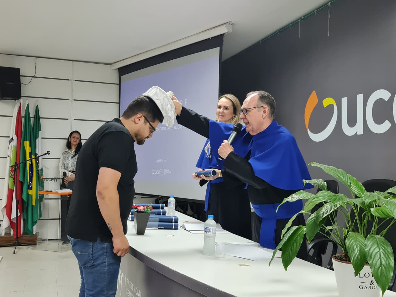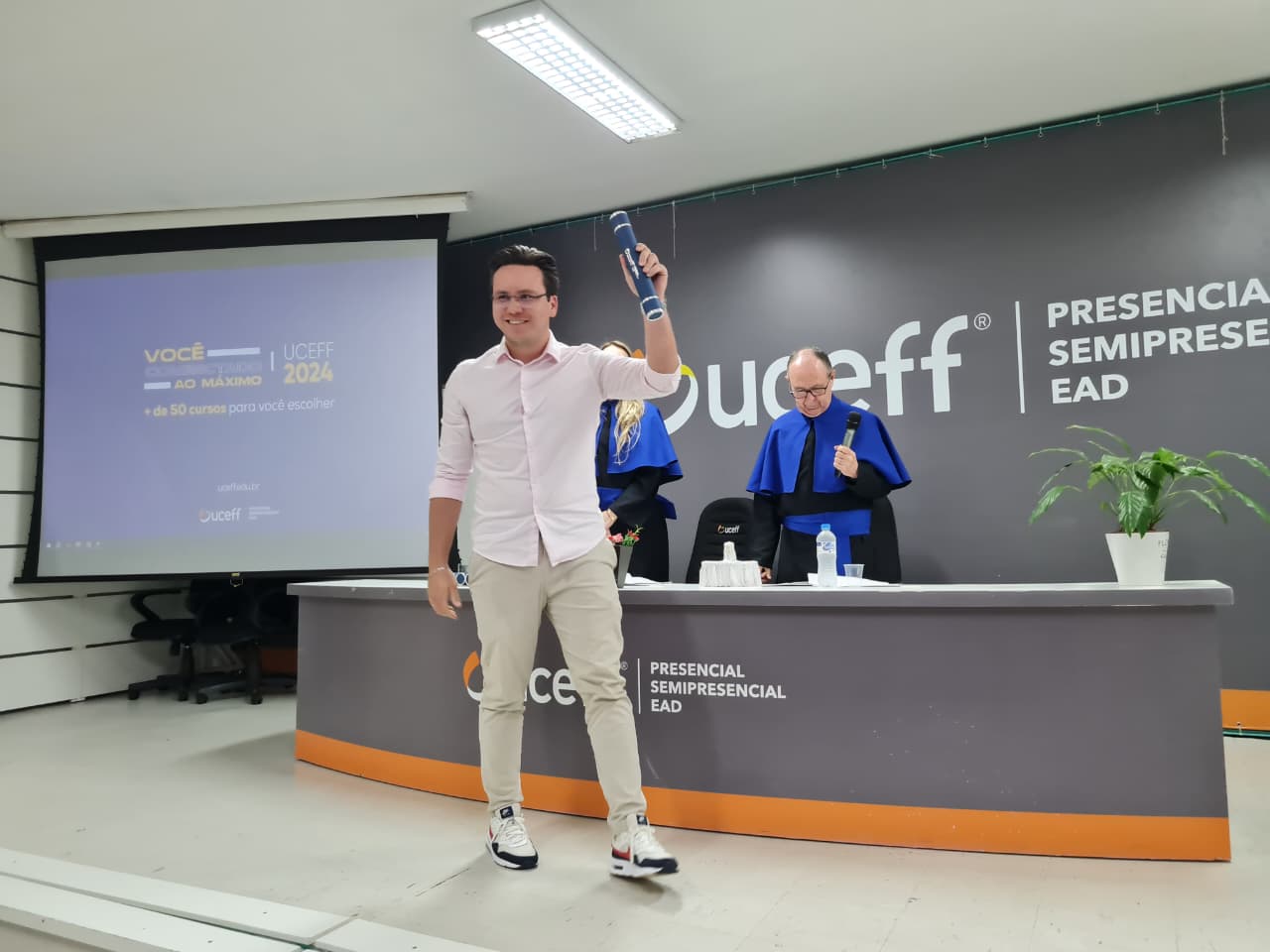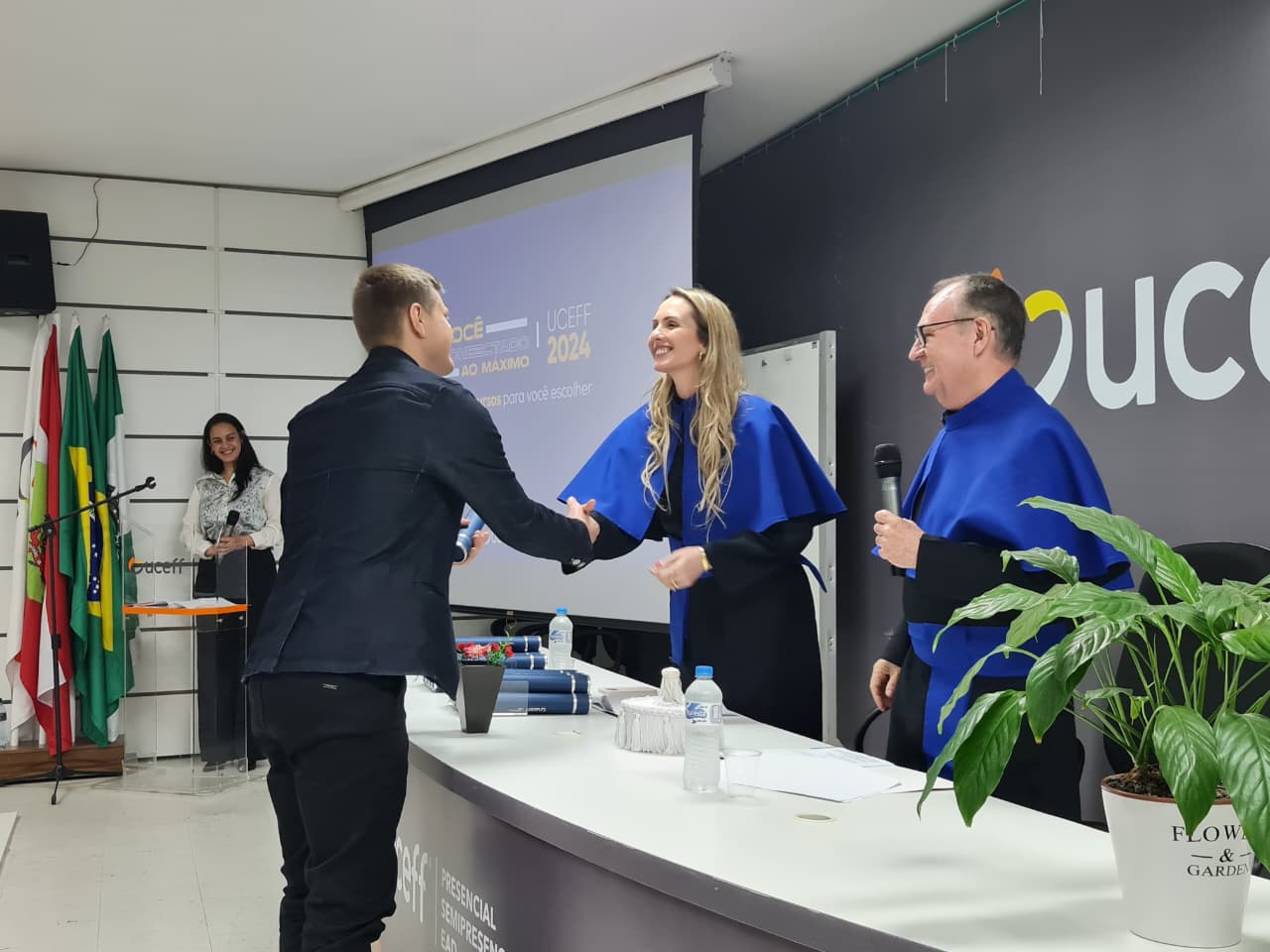 “Esse é um momento solene, é a conclusão de uma jornada importante, e nós da UCEFF desejamos que vocês continuem nessa caminhada, pois o mundo de hoje exige atualização permanente e constante. Os desafios são imensos, mas, sem dúvidas, o momento de hoje deve ser enaltecido. Em nome do reitor da UCEFF, Leadro Sorgatto, desejamos os parabéns e muito sucesso em suas caminhadas. Sejam felizes enquanto pessoas e respeitem sempre alguns valore imprescindíveis: o conhecimento, a dedicação e a ética.”, disse o professor Gilberto Antônio Niederle em seu discurso de encerramento.