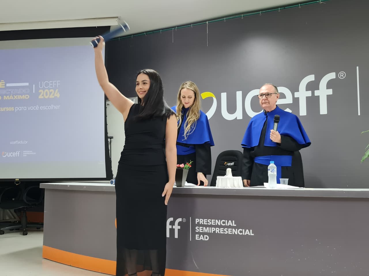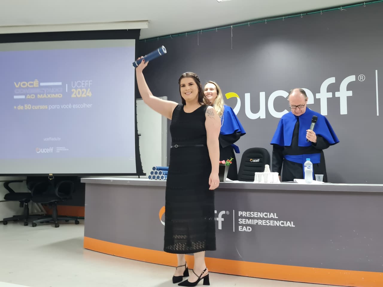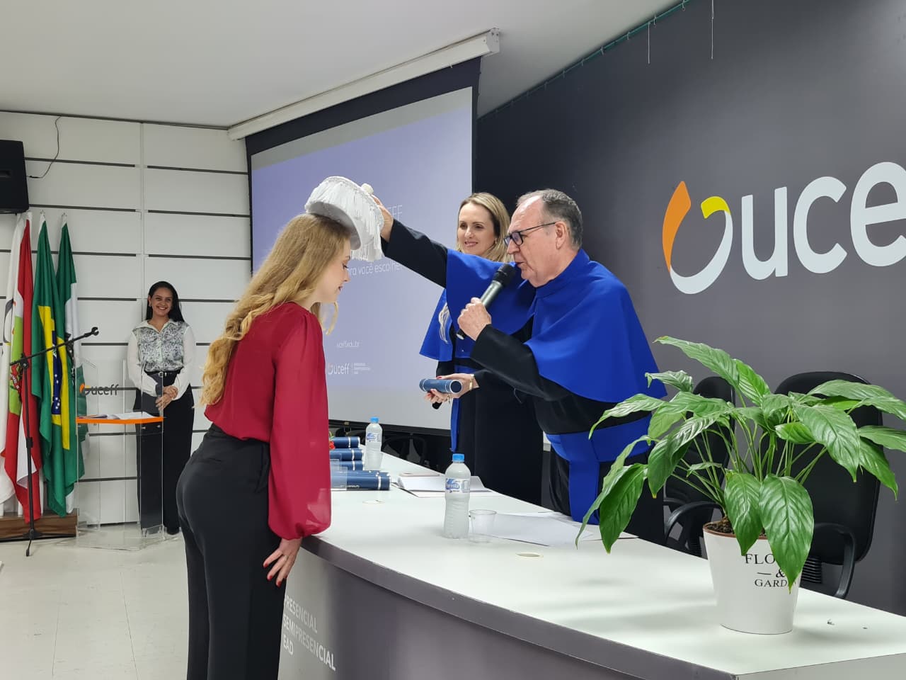 “Esse é um momento solene, é a conclusão de uma jornada importante, e nós da UCEFF desejamos que vocês continuem nessa caminhada, pois o mundo de hoje exige atualização permanente e constante. Os desafios são imensos, mas, sem dúvidas, o momento de hoje deve ser enaltecido. Em nome do reitor da UCEFF, Leadro Sorgatto, desejamos os parabéns e muito sucesso em suas caminhadas. Sejam felizes enquanto pessoas e respeitem sempre alguns valore imprescindíveis: o conhecimento, a dedicação e a ética.”, disse o professor Gilberto Antônio Niederle em seu discurso de encerramento.