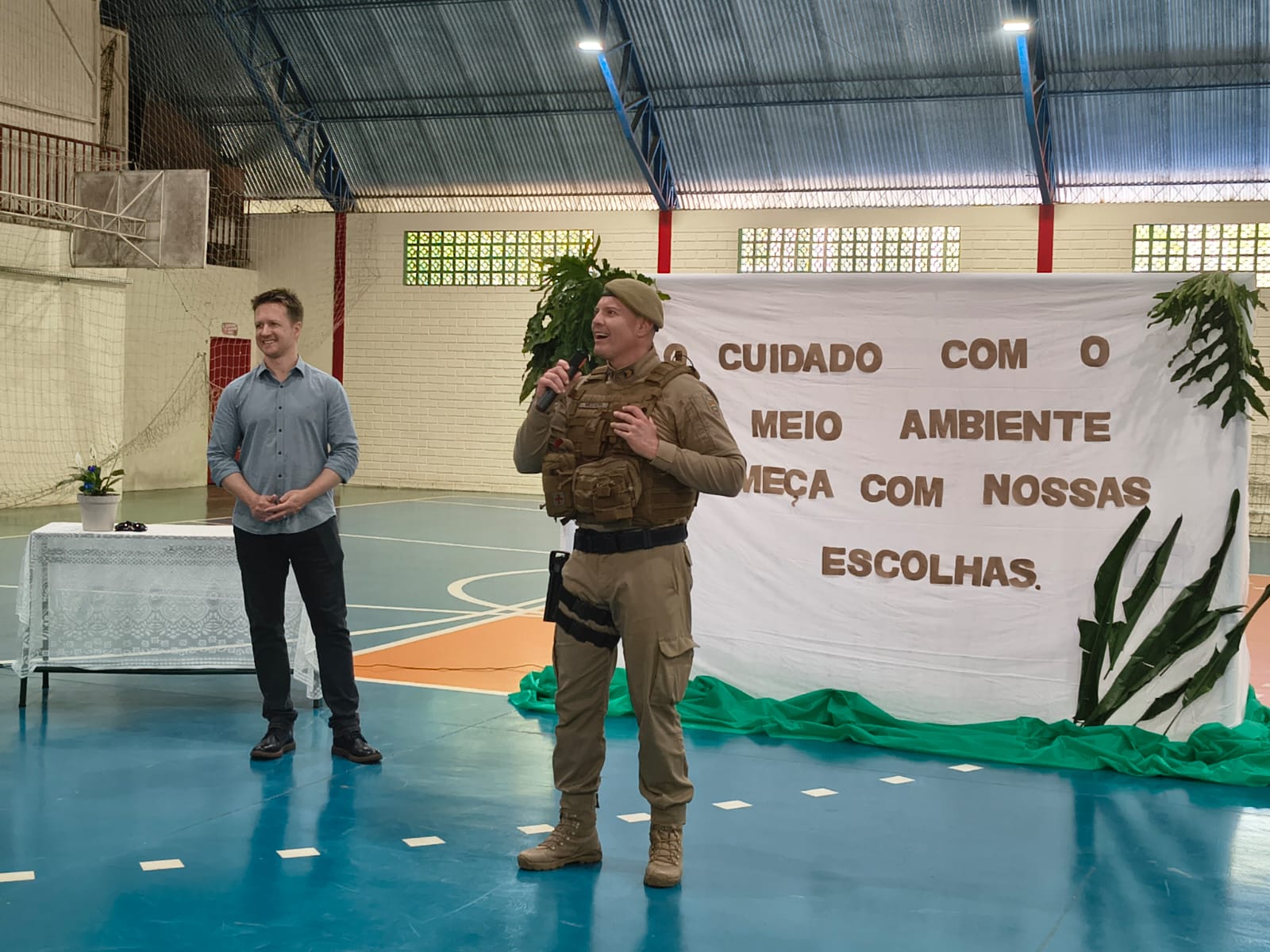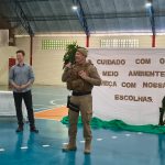 A Polícia Militar contribuiu com uma palestra educativa, reforçando que o cuidado com o meio ambiente é uma missão compartilhada entre cidadãos e instituições. Durante o encontro, o Ministério Público distribuiu kits ecológicos contendo mochila, estojo e lápis com sementes, estimulando o plantio e o contato direto com a natureza.