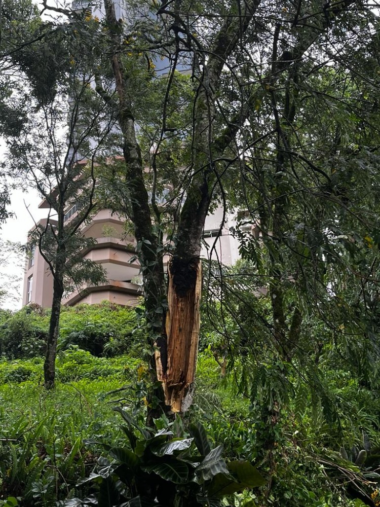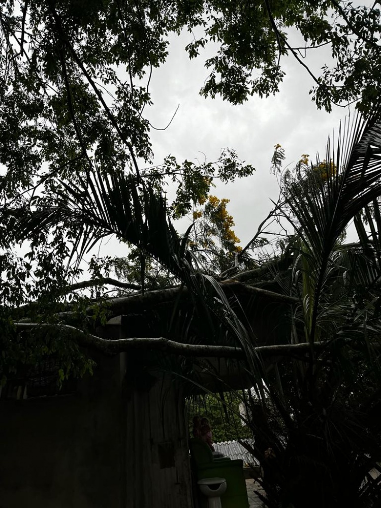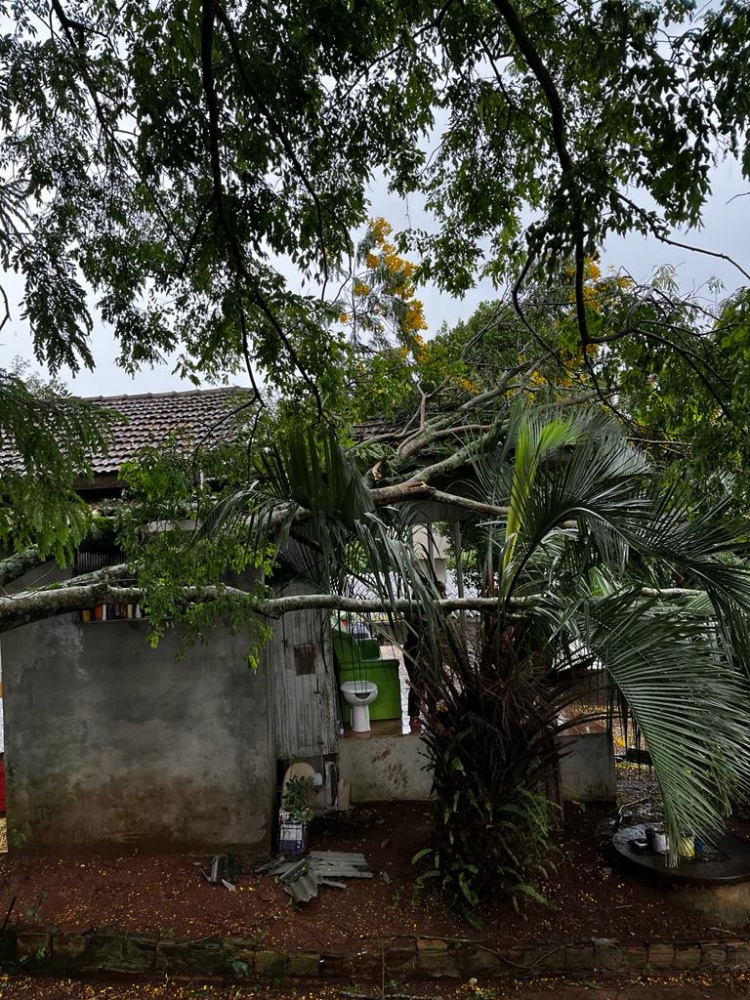 Na residência havia cinco pessoas residindo, e felizmente não houve feridos. A queda da árvore causou danos parciais no telhado do imóvel.