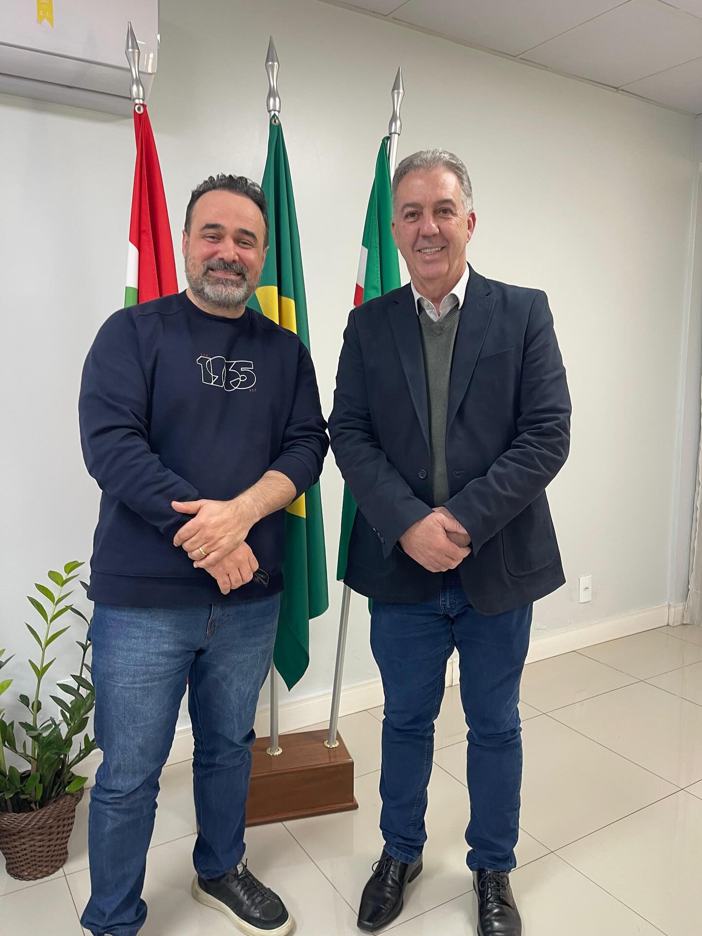 O vice-prefeito de São Miguel do Oeste, Carlos Agostini, recebeu em seu gabinete o suplente de deputado estadual, Cleiton Fossá, para uma reunião voltada à discussão de demandas regionais. Durante o encontro, foram abordados projetos que Fossá pretende implementar ao assumir o mandato, com ênfase em áreas estratégicas para o fortalecimento econômico e social do Extremo Oeste de Santa Catarina.