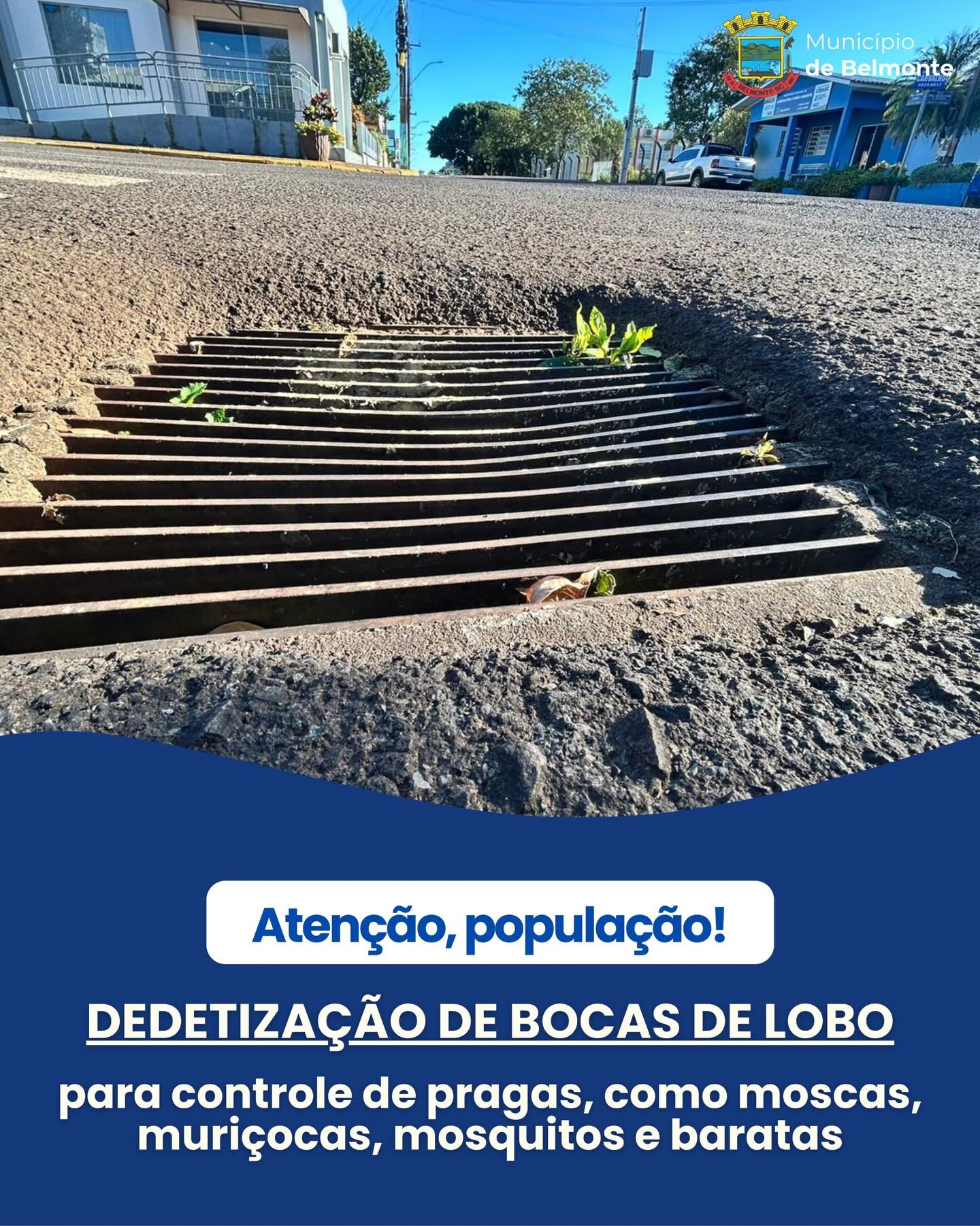 Última atualização: 2026/03/18 2:16:10A Vigilância Sanitária de Belmonte informa que, na próxima sexta-feira (20), será realizada mais uma ação de dedetização nas bocas de lobo do município.