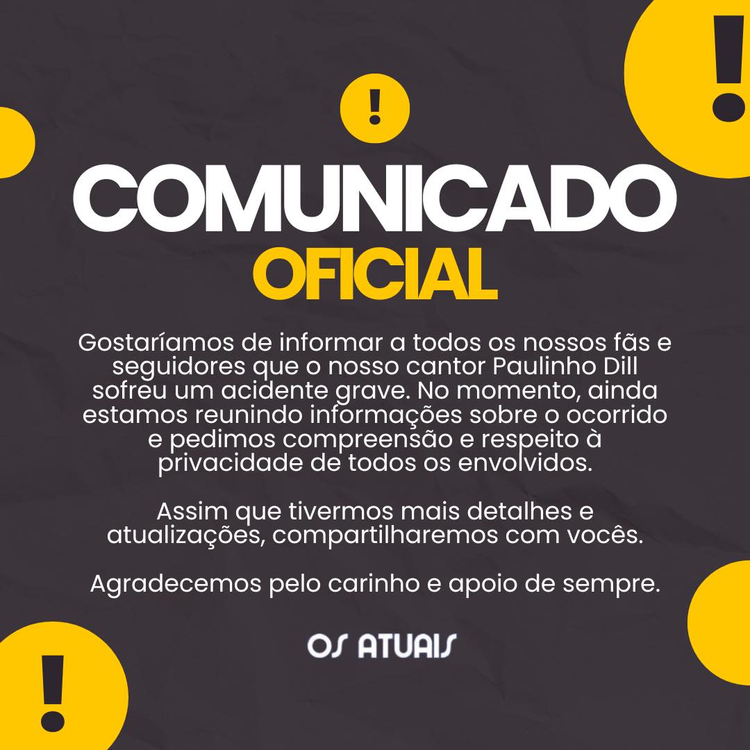 A banda Os Atuais divulgou um comunicado oficial às 20h13 desta segunda-feira (leia abaixo), informando que o músico “sofreu um acidente grave”, mas ainda estava reunindo informações sobre o ocorrido.