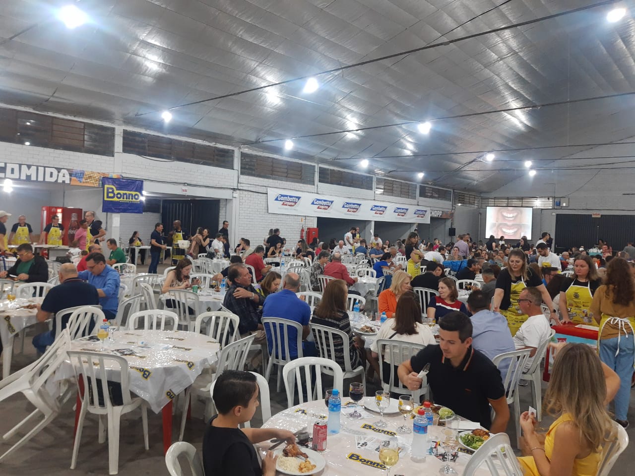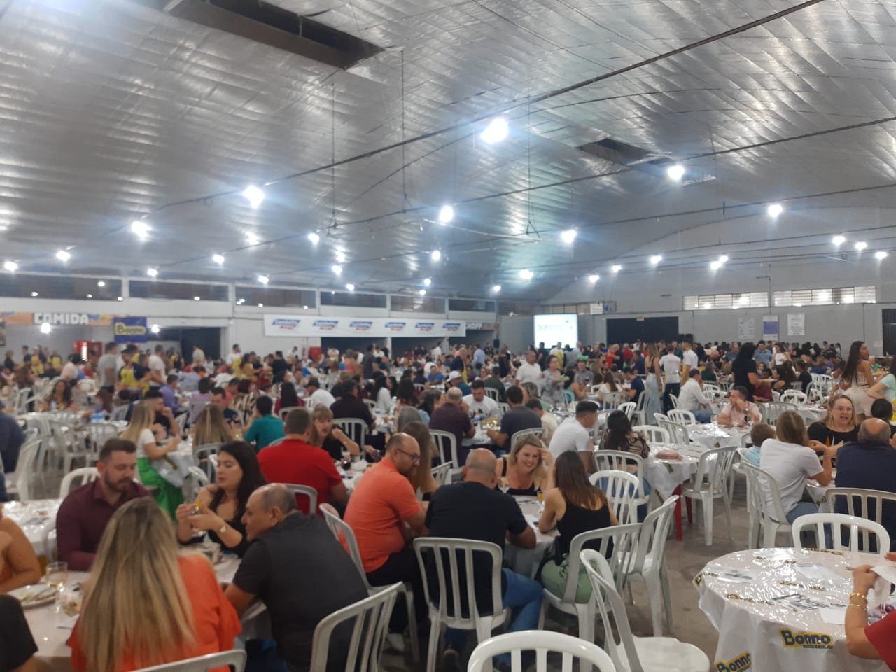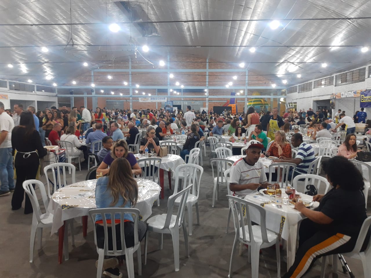 Última atualização: 2023/08/05 8:31:14O Rotary Club de São Miguel do Oeste realizou na noite deste sábado (5), a XX edição do Festival do Frango e do Vinho, no pavilhão 1 do Parque de Exposições Rineu Gransotto. Foram comercializados mais de 1300 ingressos, lotando o pavilhão da Faismo. O local contou com diversas mesas, três buffets e espaço kids.