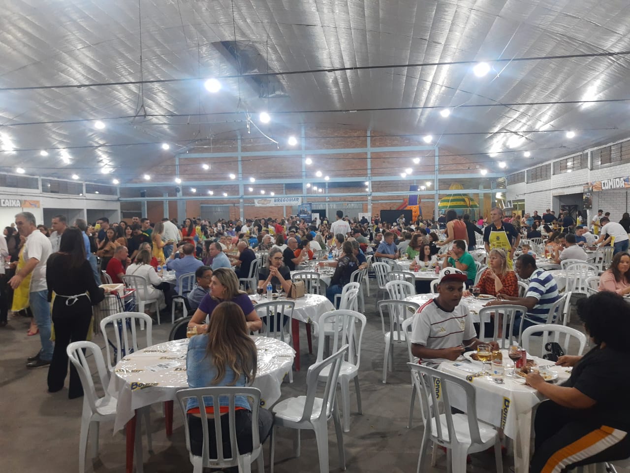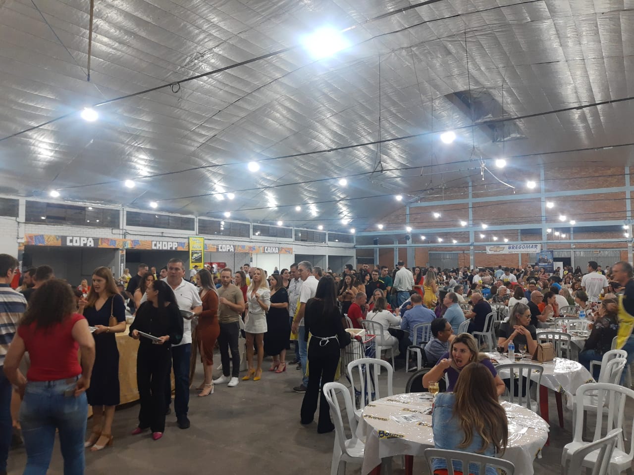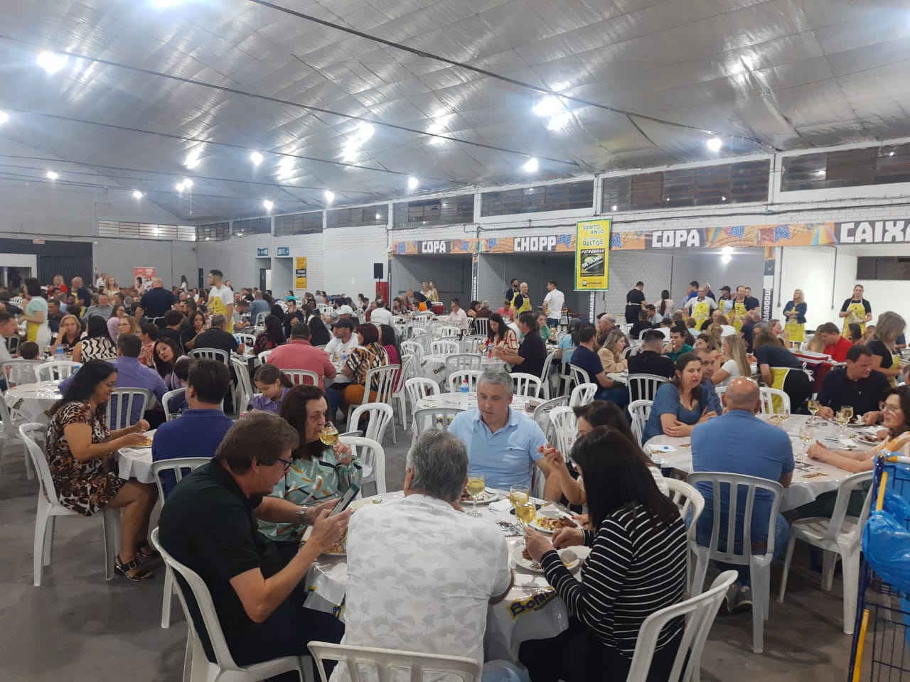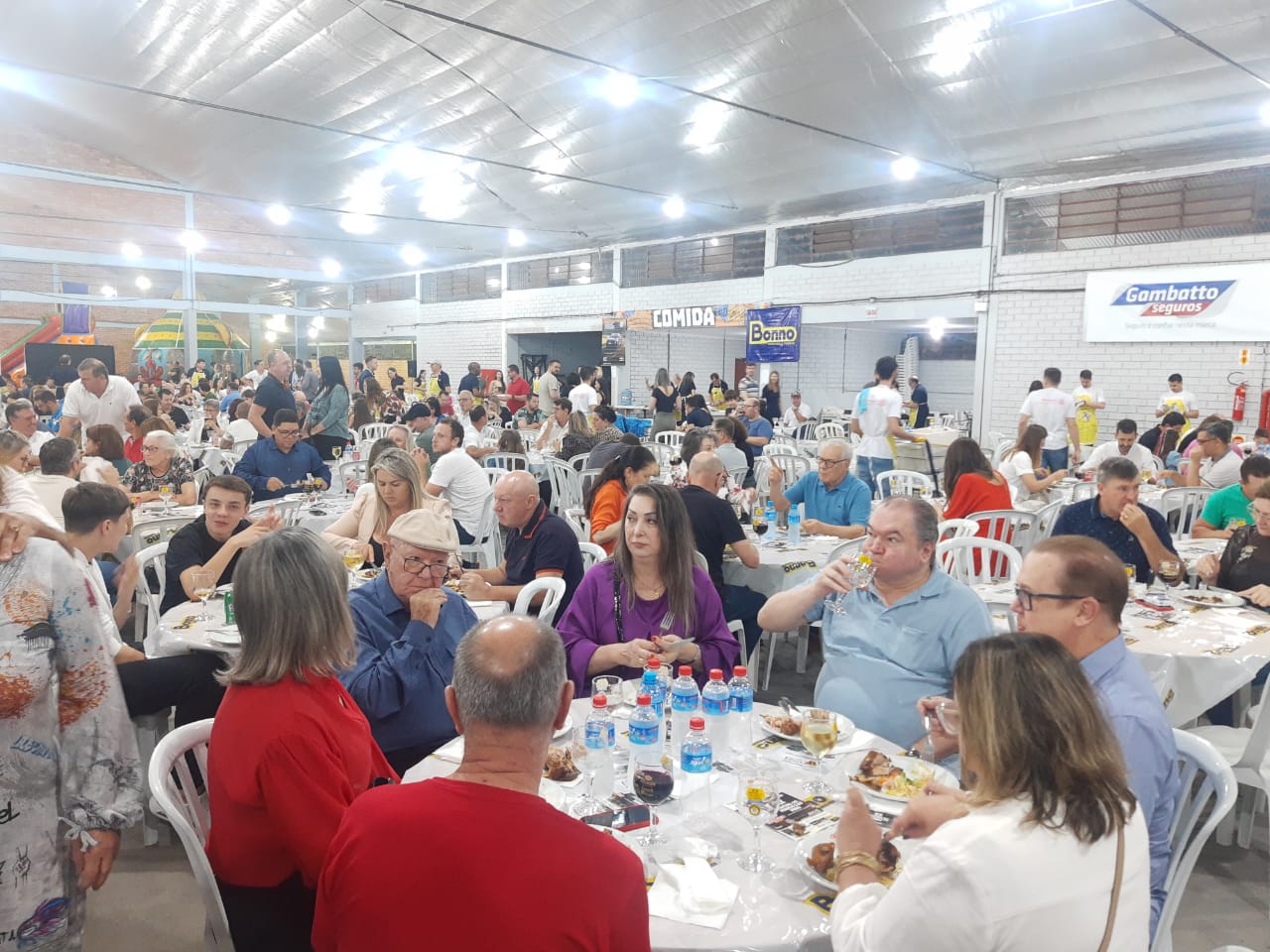 Última atualização: 2023/08/05 8:31:14O Rotary Club de São Miguel do Oeste realizou na noite deste sábado (5), a XX edição do Festival do Frango e do Vinho, no pavilhão 1 do Parque de Exposições Rineu Gransotto. Foram comercializados mais de 1300 ingressos, lotando o pavilhão da Faismo. O local contou com diversas mesas, três buffets e espaço kids.