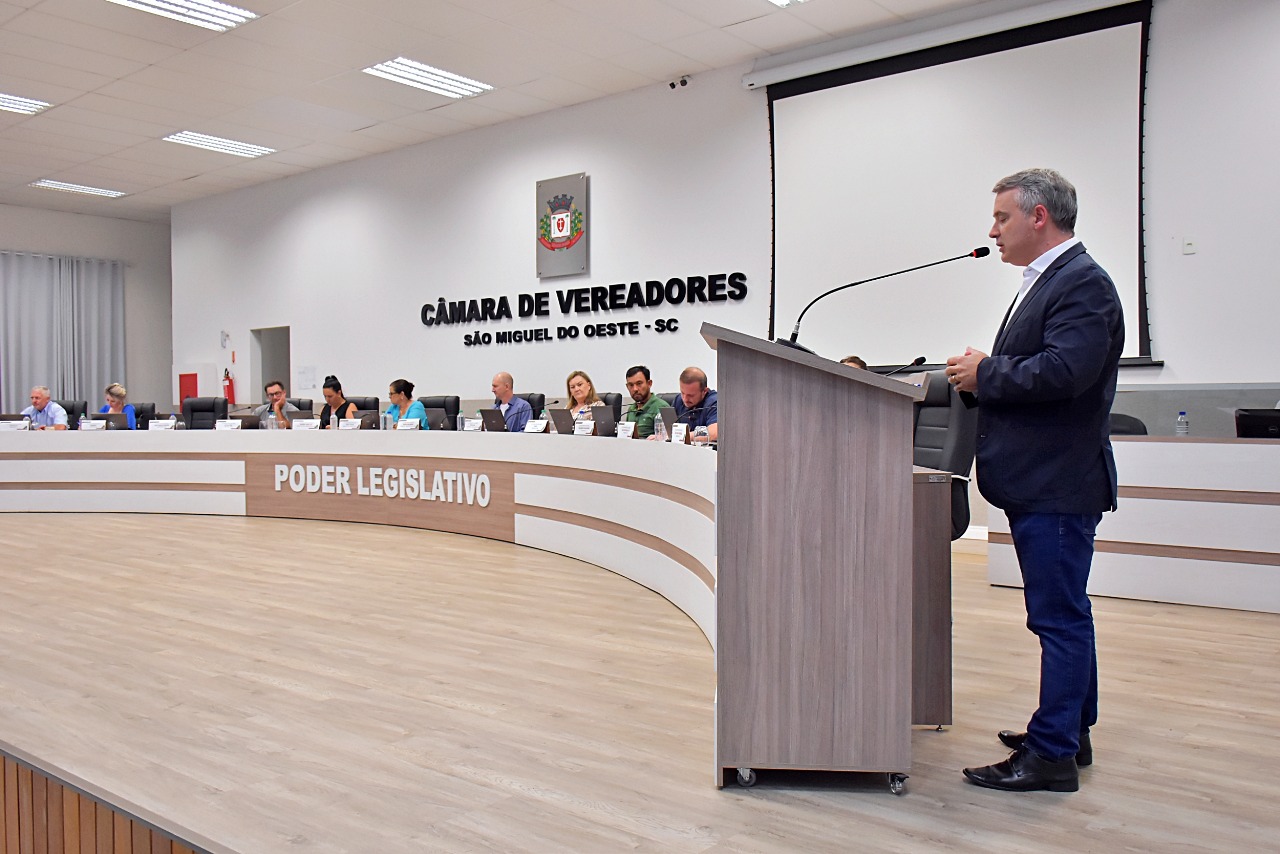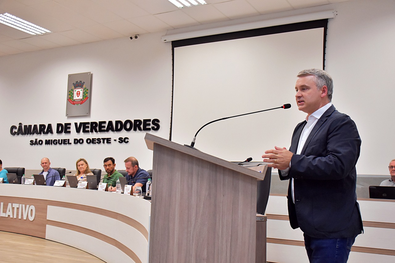 O prefeito de São Miguel do Oeste, Edenilson Zanardi, esteve na sessão da Câmara desta terça-feira (25)